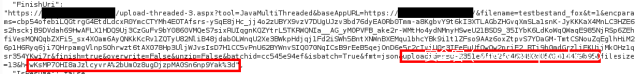 第一种URL为ChunkUri,单个文件分块会分别上传到这些地址。当文件传输完成后,可以使用FinishUri来完成服务器上的文件上传流程。在这两种URL中,我们都可以看到其中附带了文件名、文件大小等各种信息,也可以看到用来标识上传会话的uploadid。最后还有一个h=参数,后面跟着的是经过base64编码后的哈希值。该哈希值用来确保URL中的参数没有被篡改过。