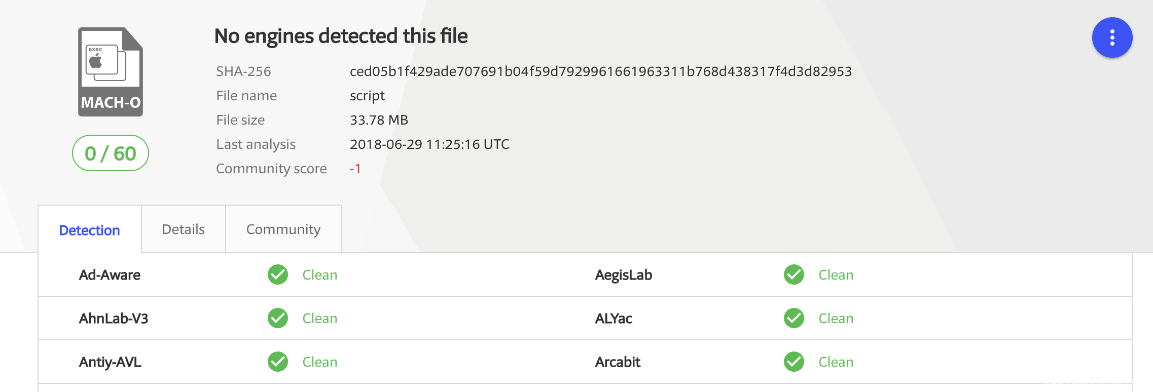 不幸的是,这个二进制文件仍然保持100%未被检测到(0/60),基于VirusTotal上的所有防病毒引擎: