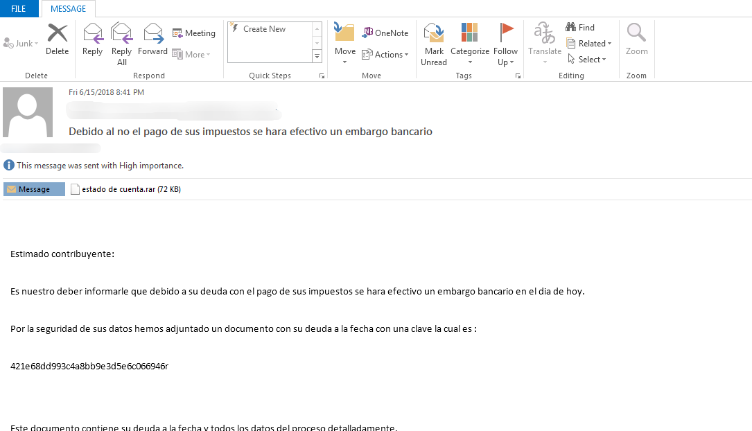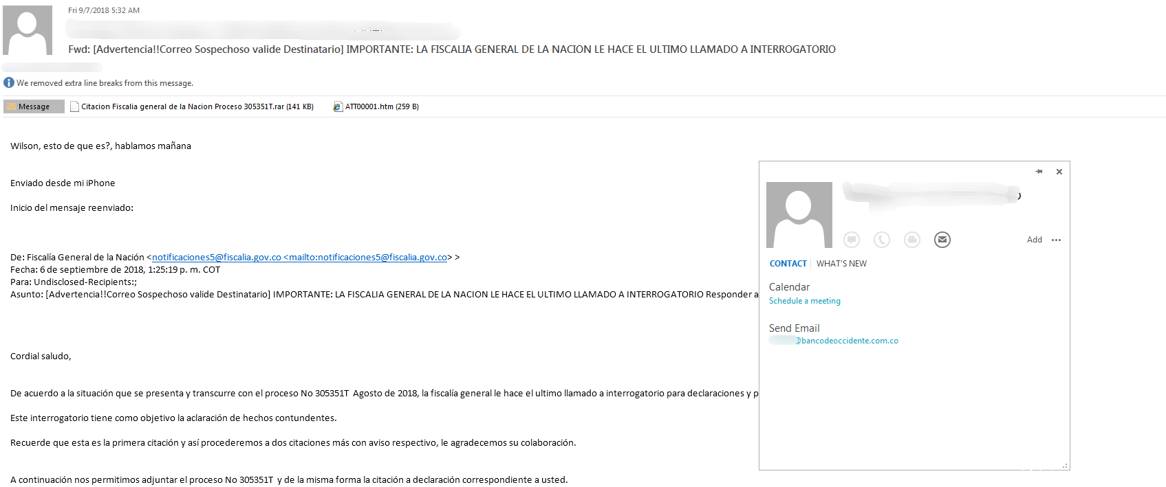 攻击Banco de Occidente的相关邮件