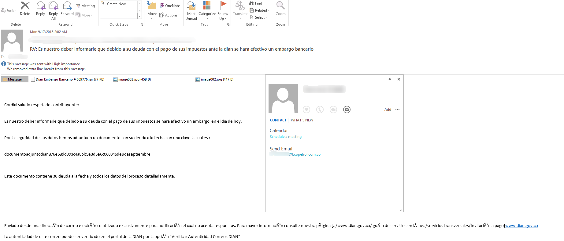 攻击哥伦比亚国家石油公司的相关邮件