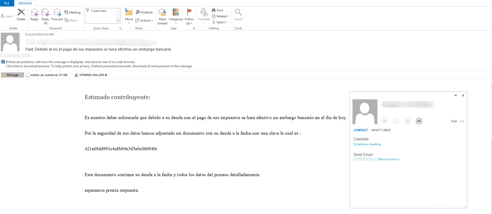 攻击Sun Chemical哥伦比亚分公司的邮件