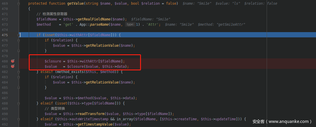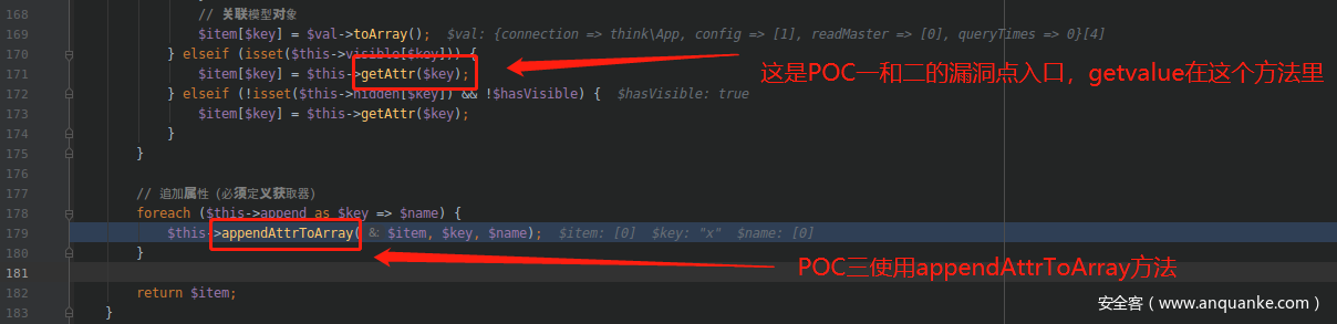 这个利用链在Attribute.php:472, think\model\Pivot->getValue()之前的利用链都是相同的,如果能另外的利用链可以顺着参考文章第三篇的思路进行发掘,寻找一个类满足以下2个条件