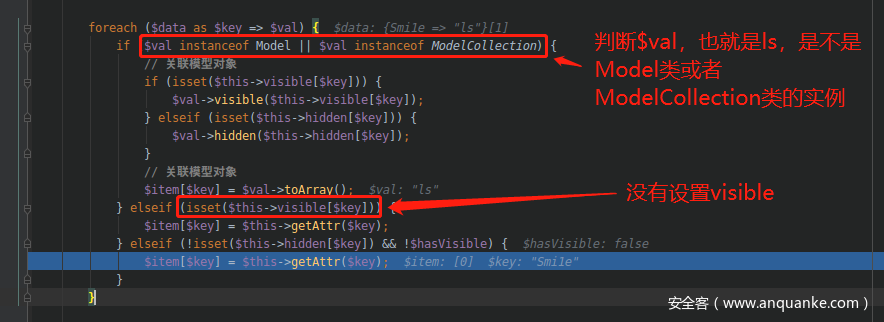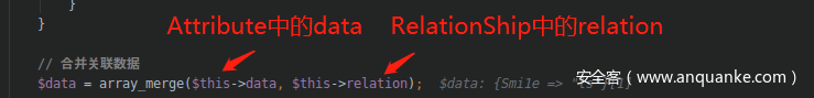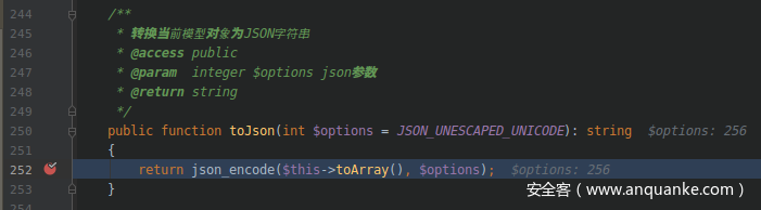 - vendor/topthink/framework/src/think/model/concern/Conversion.php__toString -> toJson -> toArray->appendAttrToArray->$relation调用不存在的函数,触发__call