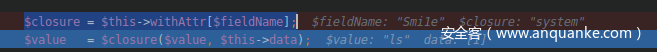 $closure = $this->withAttr[$fieldName]; $value = $closure($value, $this->data);