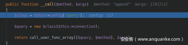 Db对象尝试调用append方法,因为Db不存在append方法所以会触发__call()