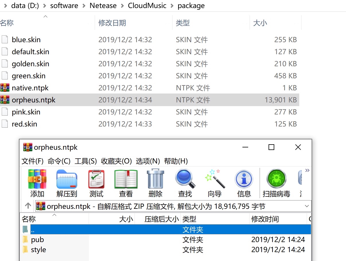 在package目录中,找到了网易云音乐的资源文件包orpheus.ntpk,以zip格式解压得到网易云音乐html资源文件。
