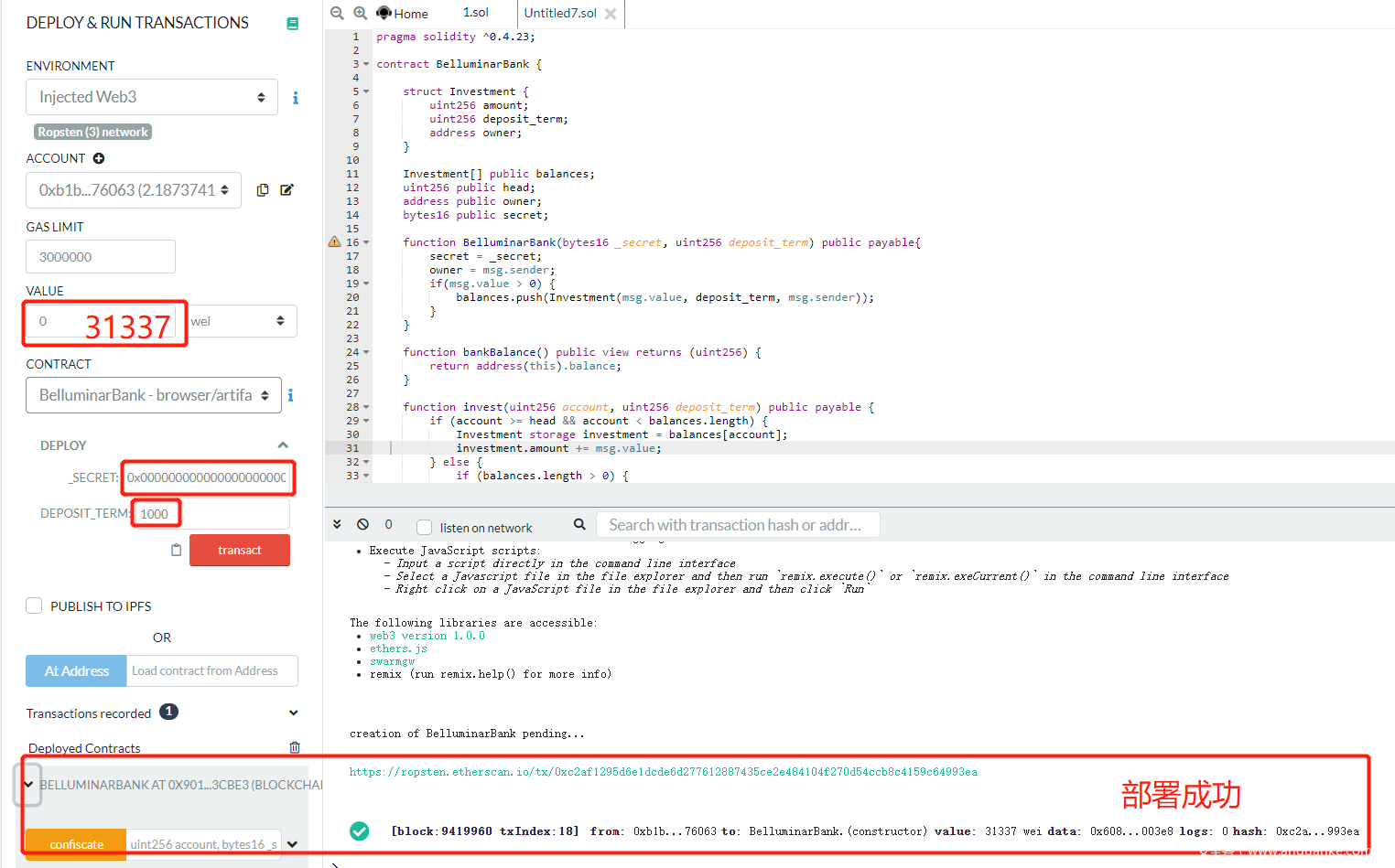 value:31337 wei,deposit_term:0x00000000000000000000000000000001,_secret:1000