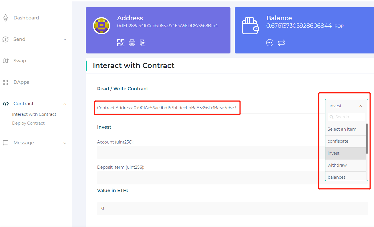 3.调用invest()函数修改合约所有者owner,存款期限数值deposit_term,变量重复覆盖值amount
