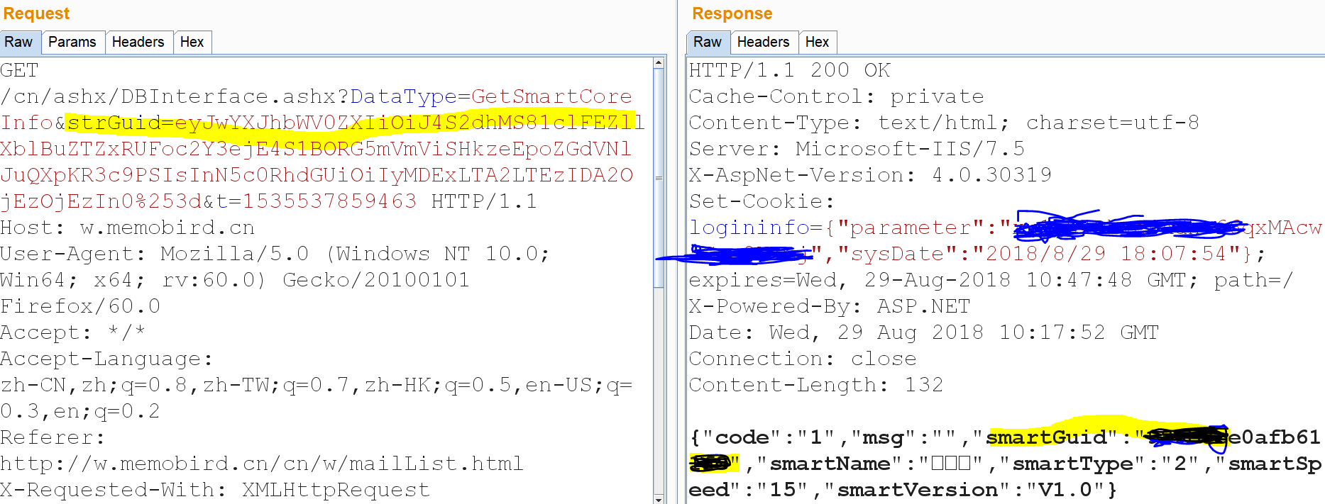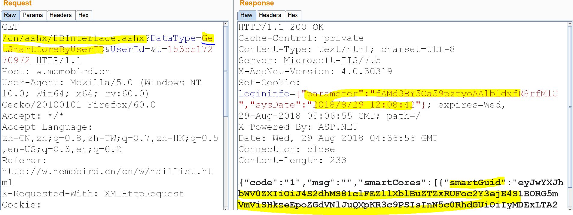 我们抓到了一个与userid有关,能返回smartguid( 值=memobirdID )的包