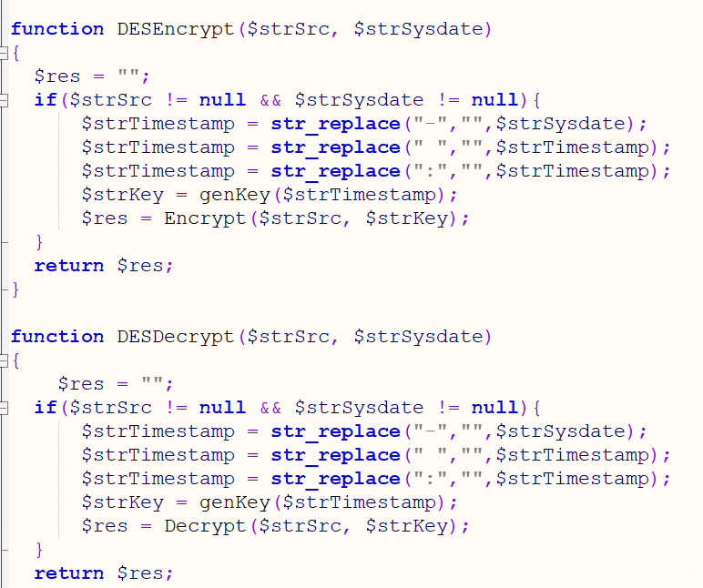 验证:抓到的包中标黄的目录文件是之前泄露的源码,这里面有request发出前的加解密方式,大意是利用时间戳和私钥进行DES加解密,而且时间戳只精确到秒的十位,个位不参与。在github上找到一个别人写的py脚本