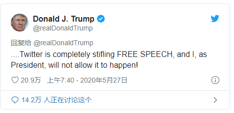 推特给特朗普帖文加注,被解读为揭露了美国总统在说谎、误导民意。这不就是狠狠打了特朗普的脸吗?