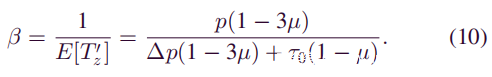 显然,一个矿工的平均采矿时间和他的平均采矿速度是彼此的倒数。因此可以使用(9)中的E[T’z]表示增长率β。它遵循: