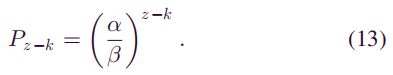如上所示,在提出的攻击模型中攻击者的挖掘过程也是负二项式分布。已经知道概率Pr[Xz = k],计算Sybil攻击成功双花的概率的最后一步是确定攻击者追上主链的概率(即Pz-k),即他开采了k个块的情况。中本聪曾经研究过这个问题。他认为这个问题类似于赌徒的废墟问题,可以通过使用马尔可夫链的属性来解决,但是在这里需要修改中本聪的公式。在假设情况下,攻击者的挖矿速度不再与诚实矿工的挖矿速度相比,而是主链的增长率。因此,诚实矿工的采矿速度α’也被β所替代。它遵循:
