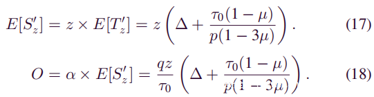 可以使用前面提到的一些已知变量来表示O。O等于每单位时间开采的块数的期望值乘以S’z的预期值(每单位时间开采的块数和S’ z是独立随机变量)。每单位时间开采的区块数量的预期值实际上是攻击者的平均开采速度α。因此剩下的问题是S’z的期望值的计算。已经从(9)知道了T’z的期望值,因此E [S’z]等于诚实矿工在S’z倍数E [T’z]中开采的区块数。它遵循: