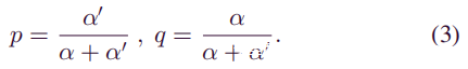 其中α’与诚实矿工的计算能力有关,而α与攻击者的计算能力有关。如前所述,一个矿工的计算能力在总计算能力中所占的比例等于其在整个网络中总采矿速度的比例。然后有: