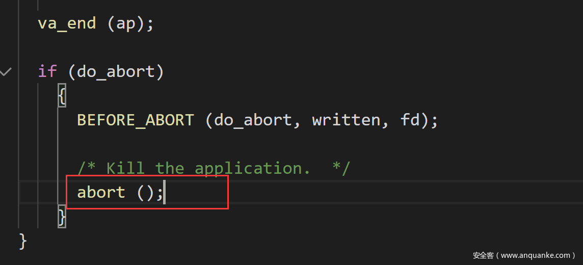 在libc_message函数中调用abort函数