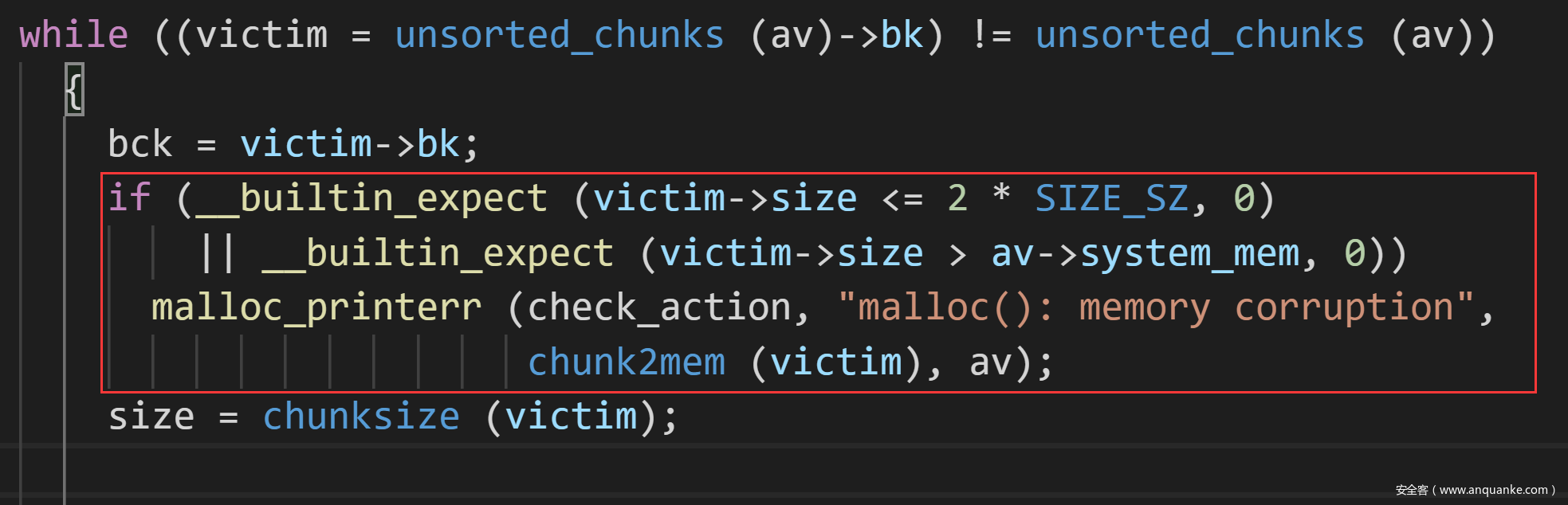 至于最后getshell是未能绕过检查直接进入malloc_printerr里面,进入libc_message函数中