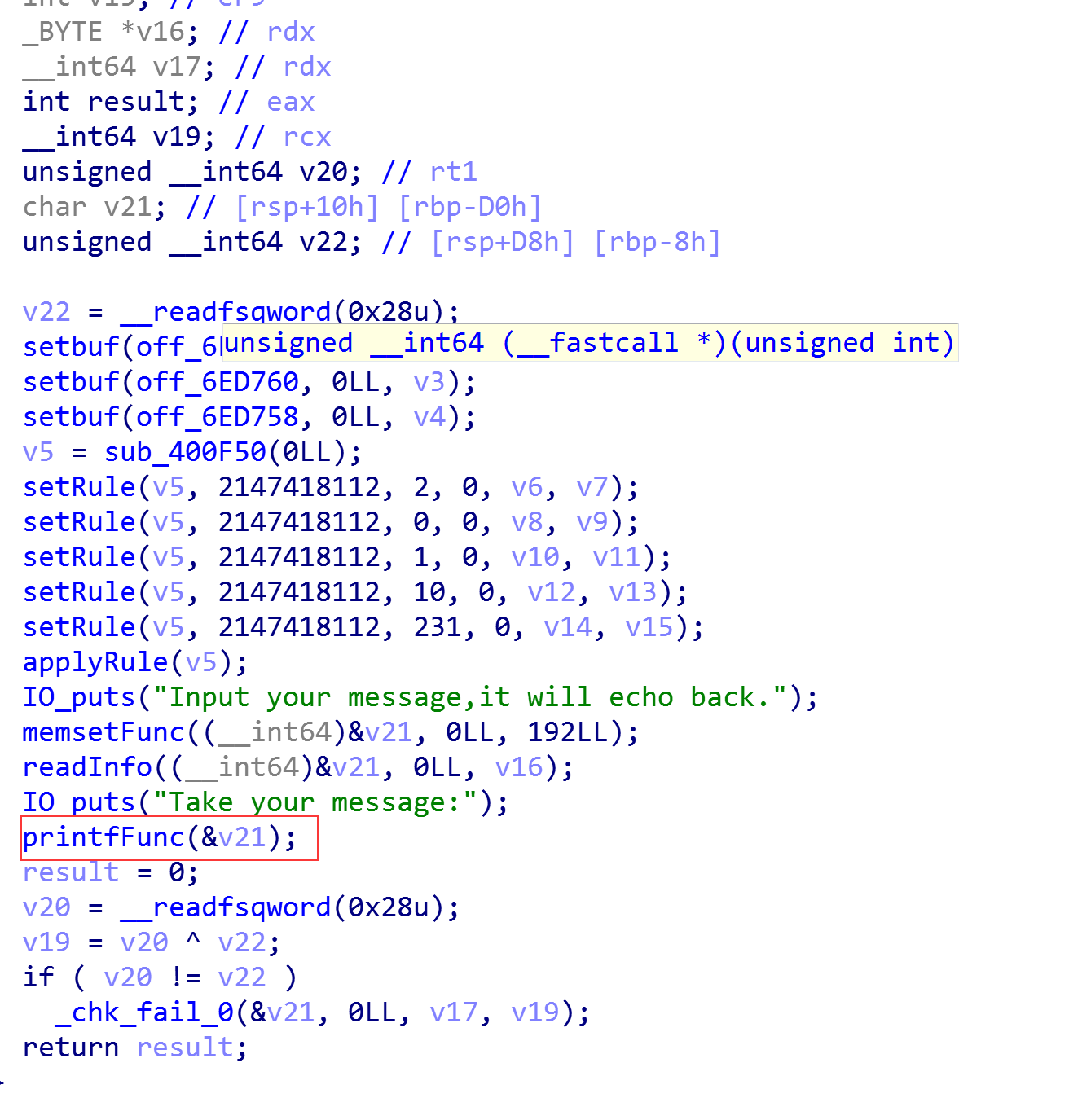 p.recvuntil("Input your message,it will echo back.")