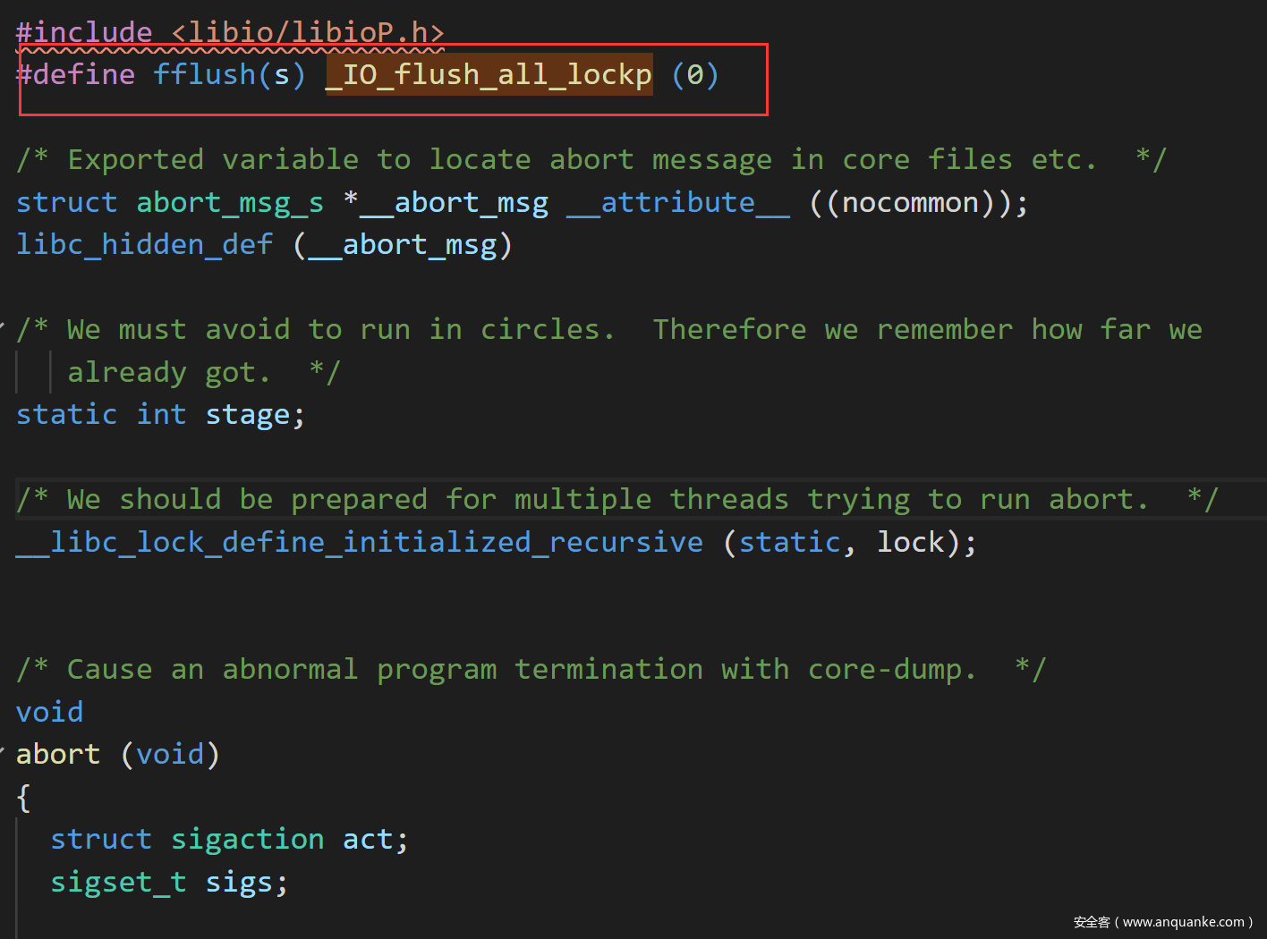 注意在该文件中将_IO_flush_all_lockp宏定义为fflush了