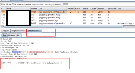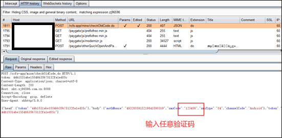 经测试,修改手机号的步骤为先验证原手机再设置新手机号,抓取第一步验证当前手机号的数据包。