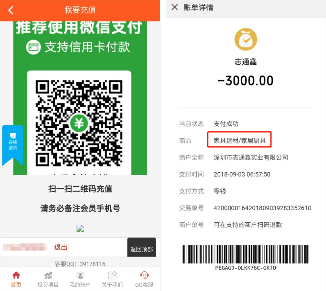n 不正规的支付环节。App内的充值界面非常简陋,且电影众筹的收款名目居然是“家具建材/家居厨具”,实在不符合常理,令人怀疑。