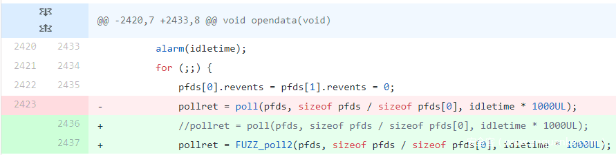通常来说,我们会希望完全删除或替换无用的事件轮询代码,因为它不会增加我们的覆盖范围,只会带来不必要的复杂性。在下面的示例中,我们为此注释掉了一个无用的select(2)调用。