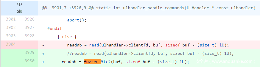虽然Preeny使用方便,但它的de-socket功能可能无法满足处理模糊测试目标的特殊性所需的精细度。因为每一个软件都是独一无二的,所以,在对软件进行模糊测试时,我们往往希望对如何以及在何处影响输入和进程状态进行细粒度地控制,以确保达到所需的覆盖范围。因此,我通常选择手动修改源代码的方法,这使我在处理极端情况时具有更大的灵活性。