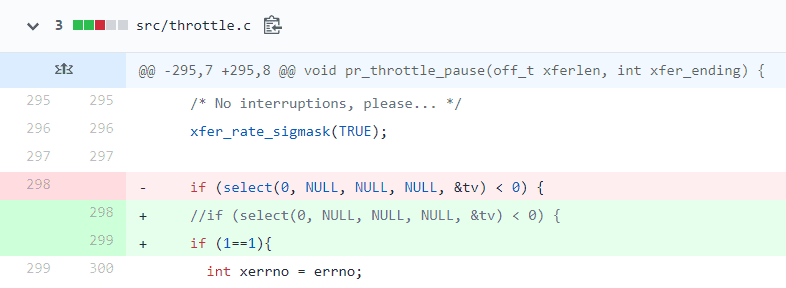 nofork选项可以防止proftpd使用fork(2)系统调用,从而把proftpd变成一个单进程服务器。