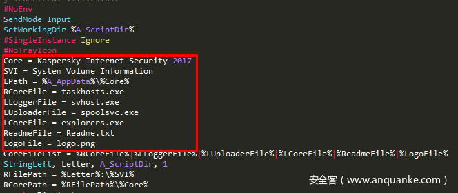 如果你是一名攻击者,而你正好又想开发一款简单且高效的凭证窃取工具的话,那么AHK绝对会是一个很好的“帮手”。没错,我们的确发现了一款使用AHK开发的专门用来窃取用户凭证信息的恶意软件,这款恶意软件可以伪装成卡巴斯基反病毒软件,并通过受感染的USB设备来进行恶意软件传播。我们将其命名为Fauxpersky,接下来在这篇文章中我们将对这个恶意软件进行分析。