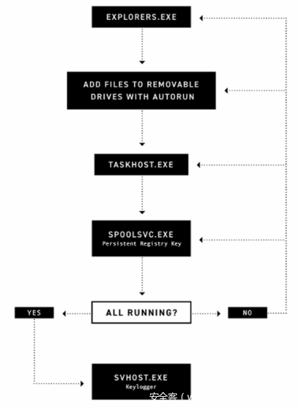 这样一来,键盘记录工具就可以从一台主机设备中传播到其他连接到该主机的外部驱动器中了。如果键盘记录工具成功感染了一台外部驱动器,那么它将会按照自己的命名机制来对受感染驱动器进行重命名。