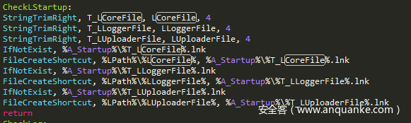 为了实现持久化感染,恶意软件还会在启动菜单中的startup目录下创建一个快捷方式: