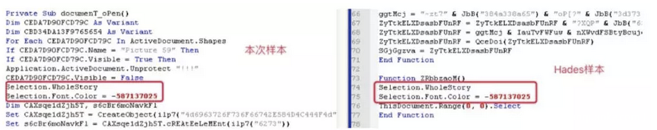 这几个样本都归属于Hades组织,并且使用的宏代码大同小异,基本一致。