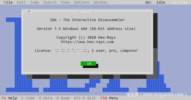 IDA Pro文本模式用户界面至今仍保持不变,调用时的外观如下: