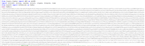 - 通过python的反编译脚本uncompyle6.py对保存的pyc文件进行反编译,就可以生成一个pupy的py脚本。通过对脚本的简单分析就可以十分确定这个样本是pupy家族的。脚本是开源的,具体的行为就不进行分析。