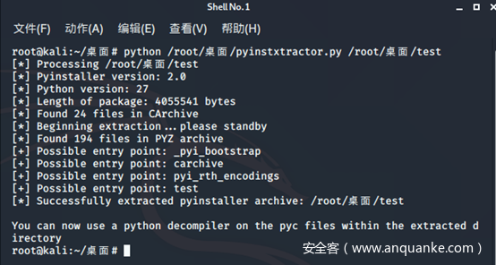 用法也很简单,指令pyinstxtractor.py+可执行文件,就可以进行解包。