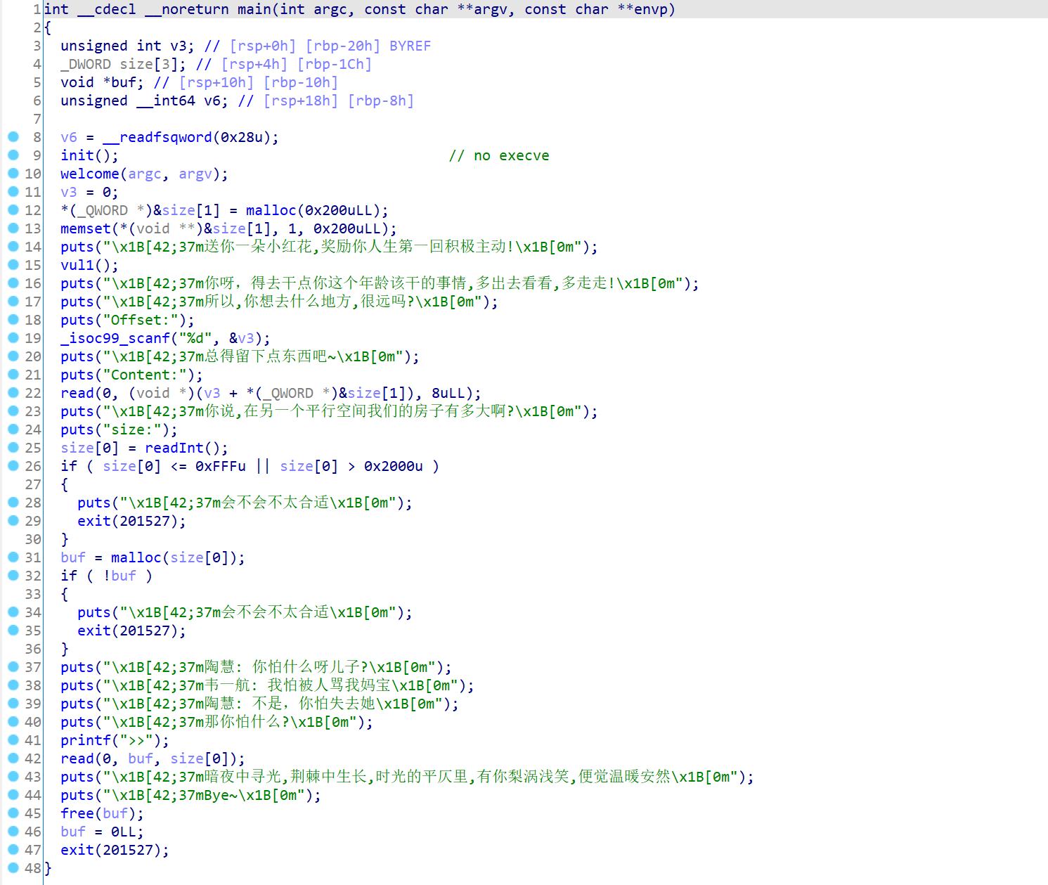 这里用assert对idx和TCACHE_MAX_BINS进行比对,我在本地测试的时候用的是2.29的libc,在这块地方发生了报错,但实际在题目给出的libc中一般assert的内容都会被优化掉,所以这个检测语句也不复存在了。