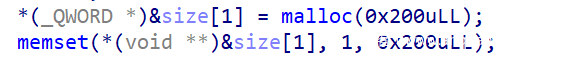 从上面的信息我们可以知道在libc2.30中会校验counts是否大于0,如果是0则不从Tcache中取,所以我们需要在调试过程中,找到一个合适的size,使得判定counts的位置正好落在了程序申请的0x200的堆块上,因为这个堆块用memset初始化之后每个字节的内容都是1。