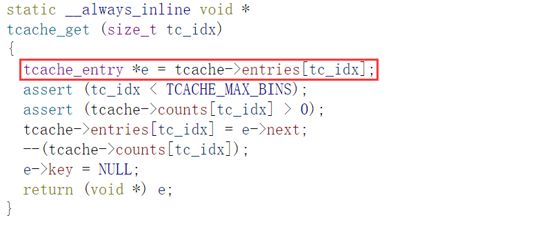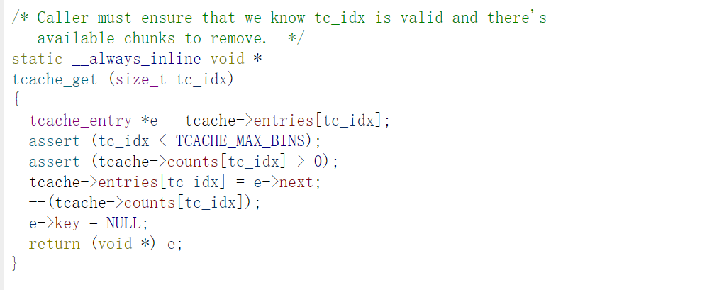 解决了这个条件判定后,我们需要来考虑tcache_get内的限制
