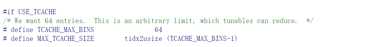 搜索代码中的TCACHE_MAX_BINS,发现这是一个宏定义的常量。