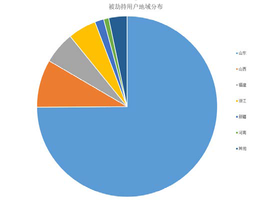 根据已有数据统计显示,受到此次劫持事件影响的用户已经超过百万。而这些被劫持的用户绝大多数来自于山东地区。另外,山西、福建、浙江、新疆、河南等地也有一定规模爆发。