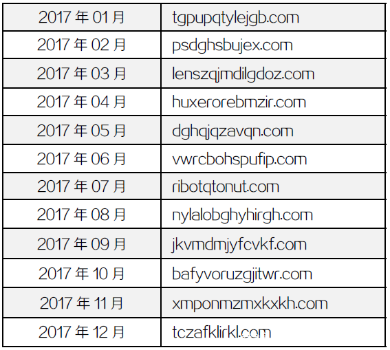 部分年份-月份生成的域名对应关系如下: