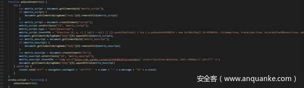 最后,窗口加载后执行addyandexmetrix()。该函数是一个类似cnzz,做访问统计的js。