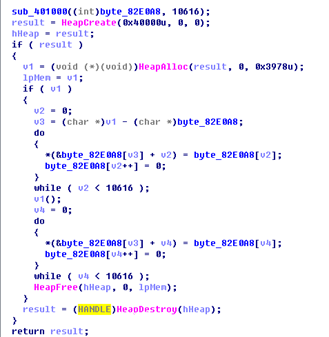 解密出来的shellcode是一个loader,会加载一个被抹去了DOS头的dll创建线程执行恶意行为。