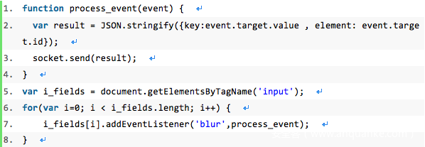 逻辑很好理解,监听blur 事件(输入框失去焦点) 通过websocket发送用户input内容。
