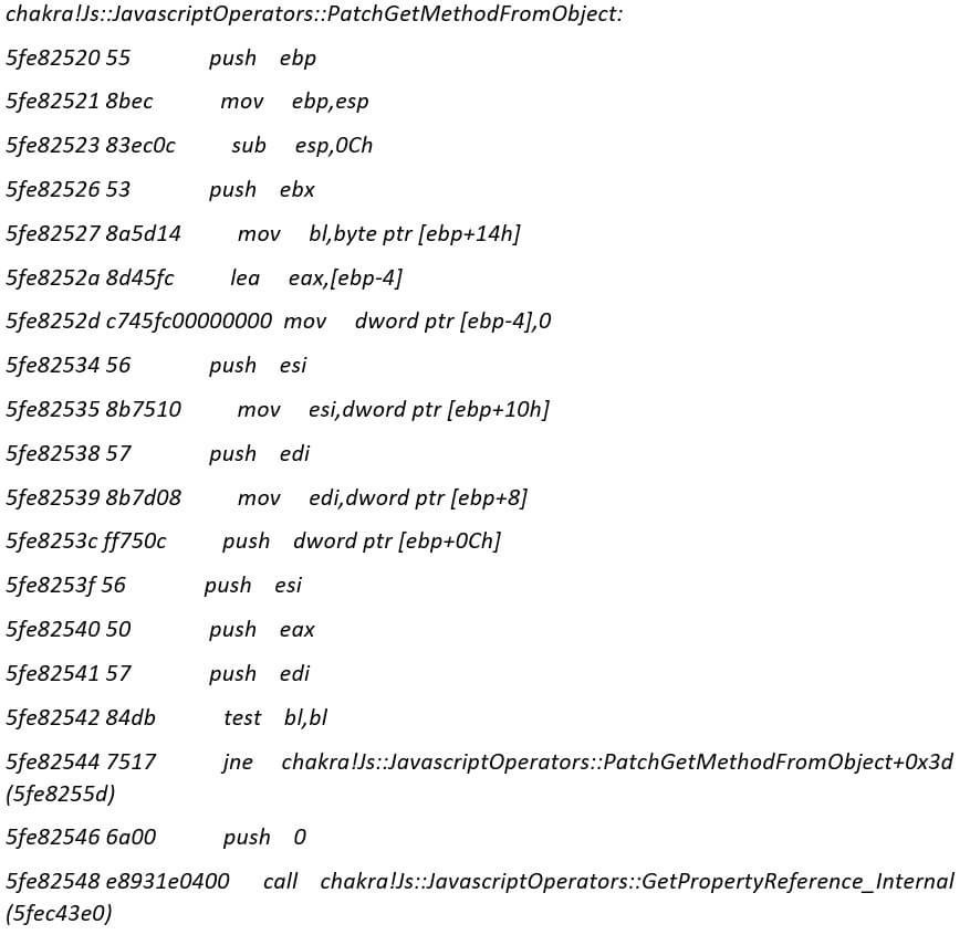 当Chakra引擎试图执行由即时(JIT)编译器生成的优化函数代码时,就会产生这个UAF漏洞,相应的编译器在关闭过程中就已经被释放。在这篇文章中,FortiGuard实验室深入分析了微软Edge浏览器Chakra引擎的汇编代码,以揭示导致整个漏洞的根本原因。