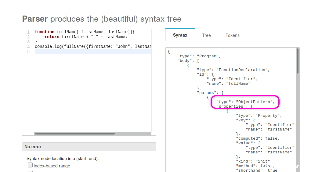 ECMAScript添加的一个功能就是函数参数解构功能。在该功能的帮助下,如下JS代码现在可以正常执行: