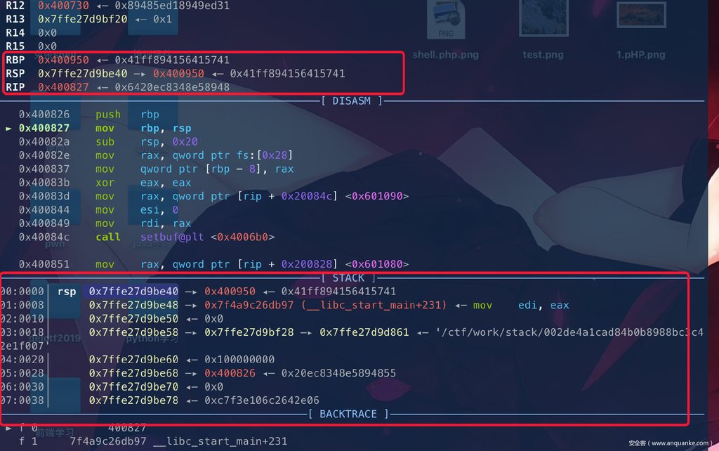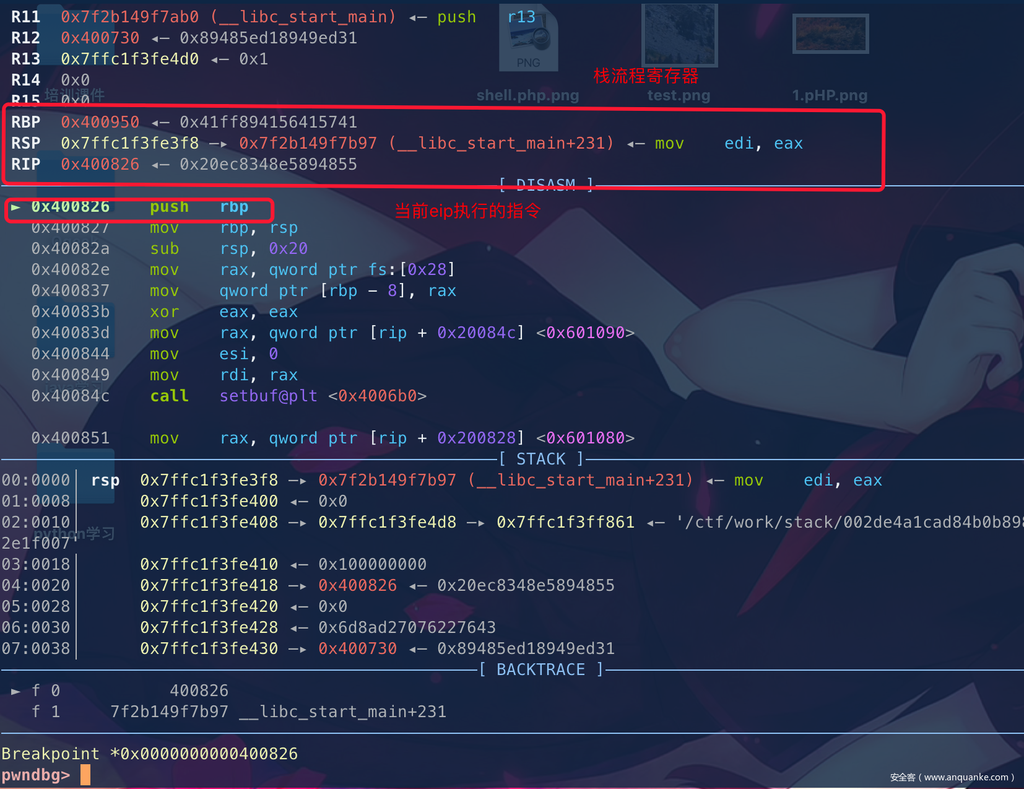 然后把当前ebp寄存器的值(调用函数A的基地址)压入栈内,然后更将ebp寄存器的值更新为当前栈顶的地址。