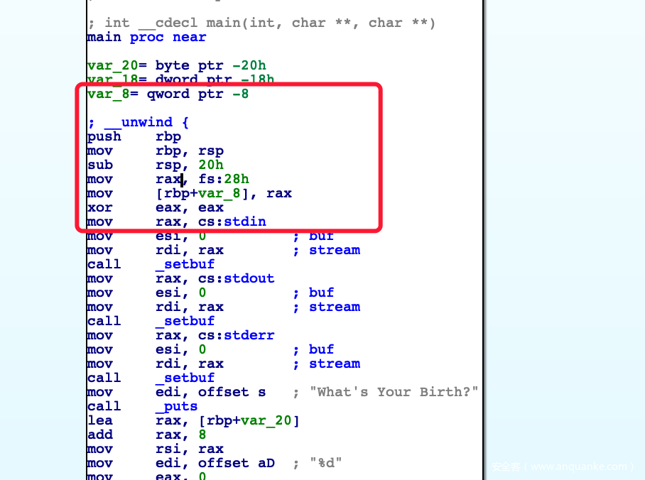 这里因为不需要栈越界所以canary保护就没啥用了,如果栈越界的话,那么就会导致canary存的值发生改变,然后比较改变之后程序就会执行__stack_chk_fail函数,从而终止程序,后面遇到bypass cannary保护我再继续深究下具体流程,目前我们还是继续刷题,巩固下前面的知识先。