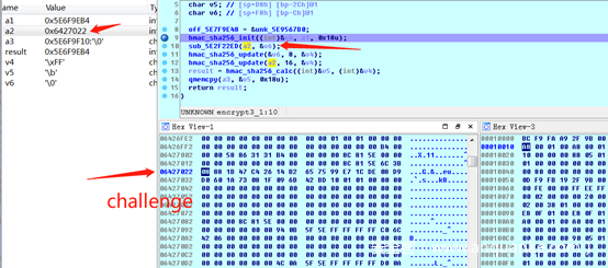 此函数有三个参数:其中一个指向的内容为实际用到的16字节challenge: